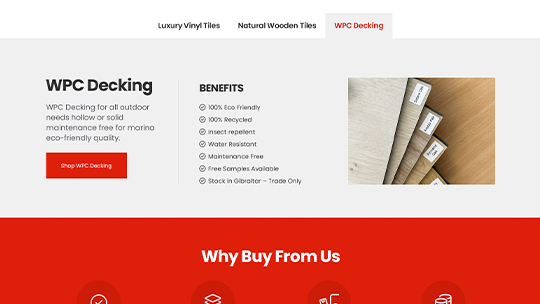 For Fab Floors & Decks, we created their first elegantly designed brochure website, to showcase their range of flooring options along with the unique benefits of each. With an easy-to-navigate layout, the site prioritises simplicity, allowing customers to quickly access product details and contact information. As the company chose to focus on a website over social media, we implemented a strong SEO strategy to ensure Fab Floors & Decks ranks on the first page of search results, making it easy for their target audience to find them and visit their shop in Main Street Gibraltar