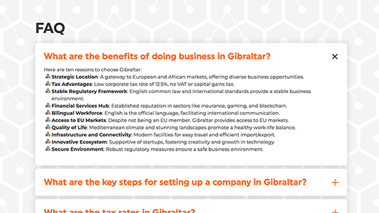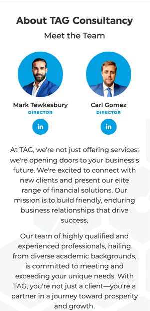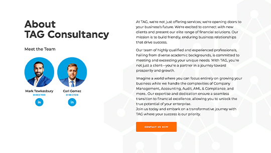For TAG Consultancy, we developed a professional website that reflects their range of financial services, providing a secure and trustworthy online presence. The main challenge was to move their existing Gibraltar-based website away from WordPress and its associated vulnerabilities with open-source platforms. To address this, we transitioned the site to a proprietary solution, ensuring it operates on secure servers with closed code, significantly improving both security and performance.